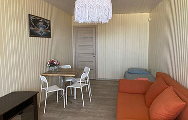 Территория гостевого дома уютная, зеленая и полностью огорожена, поэтому вы можете не беспокоиться о безопасности детей. В тихом поселке Штормовое вы отдохнете от городского шума, но при этом рядом есть все необходимое: продуктовые магазины, остановки транспорта и кафе с местной кухней.